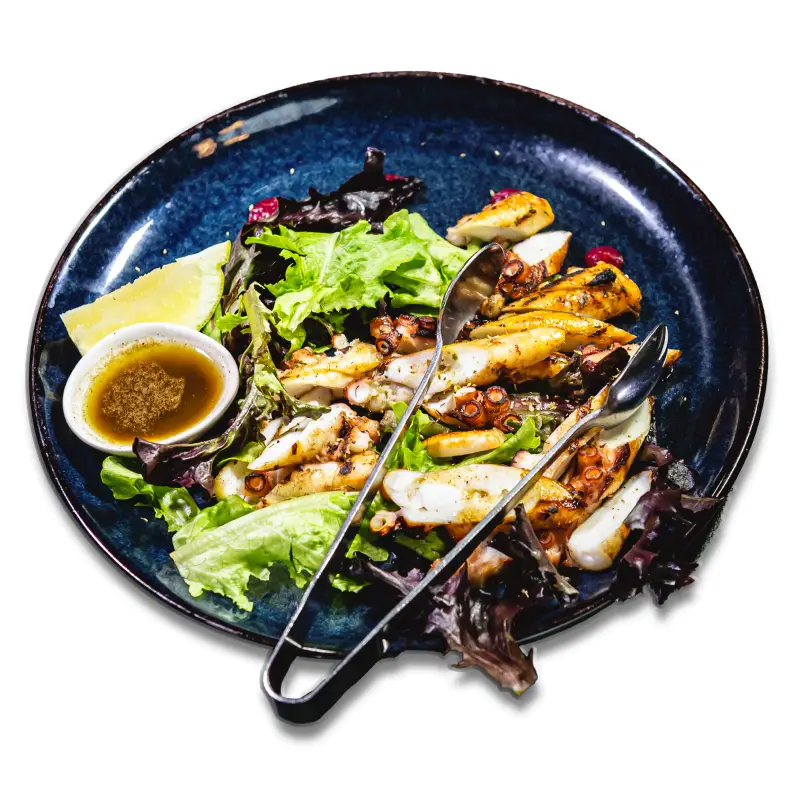 Pirates Bay octopus done the Greek way – moist & tender, slowly grilled on charcoal, drizzled with Cretan extra virgin olive oil, vinegar & herbs. Served with a beetroot purée.